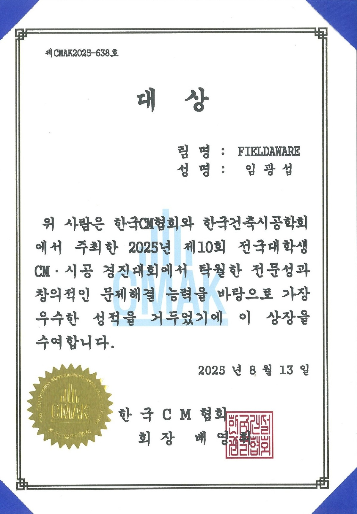 2025 제10회 전국대학생 CM/시공 경진대회 대상 수상