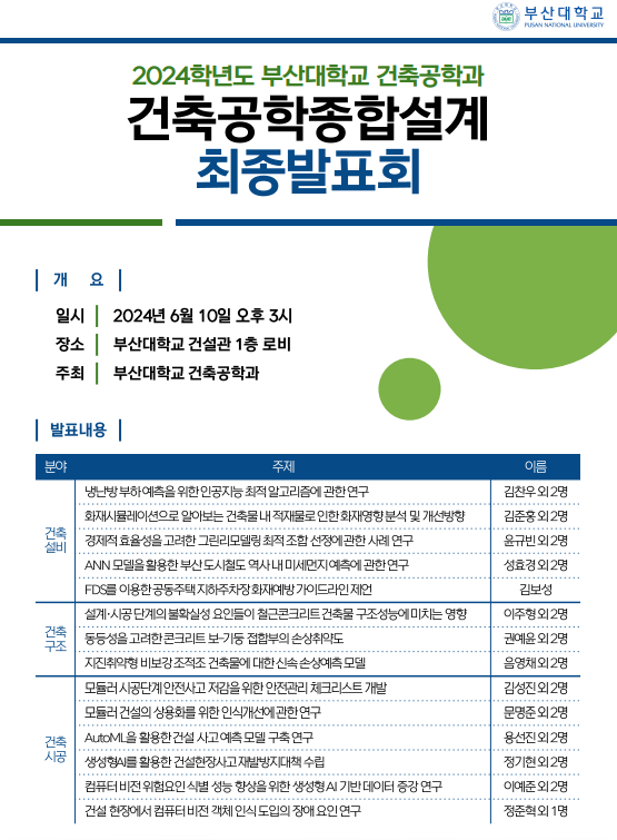 2024년 부산대학교 건축공학과 건축공학종합설계 최종발표회